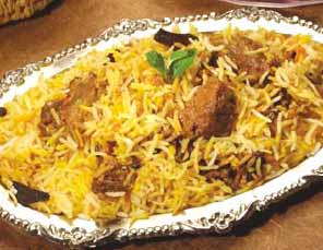 | Portie geurige rijst bereid met kardamom, kaneel, kruidnagel en amandelen
