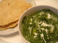 | Kip/lamsvleescurry met spinazie, naar keuze mild (met room) of medium heet (met chili en gember)